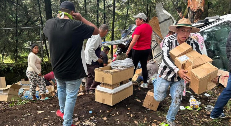 Las personas que pasaban por la zona y otras que llegaron al referido tramo carretero, empezaron a robarse los víveres; algunos llenaron sus cajuelas y asientos de los automotores.